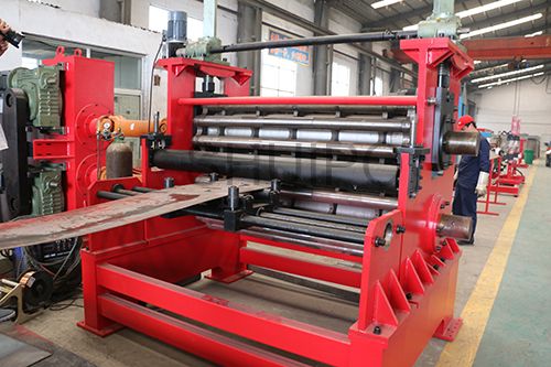 波紋板成型機(jī)主要分為機(jī)架、驅(qū)動(dòng)部分、上壓輪、下壓輪、進(jìn)料導(dǎo)向機(jī)構(gòu)、以及前后工作臺(tái),波紋板成型機(jī)是通過(guò)同時(shí)旋轉(zhuǎn)的上、下壓輪,將平板加工成波紋狀,成型效果一致性好,效率高,波紋的高度調(diào)整有電機(jī)驅(qū)動(dòng),通過(guò)操作控制箱上的按鈕調(diào)整波紋高度范圍,調(diào)整方便,性能可靠。